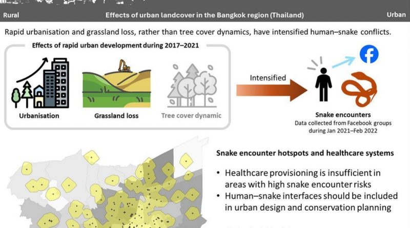 Ratnarathorn, N., Chotimanvijit, B., Sanunsilp, N., Laoungbua, P., Charoennitiwat, V., Kongrit, C., & Thaweepworadej, P. (2026). Effects of rapid urbanisation on human–snake conflicts in a tropical mega-city: Challenges to biodiversity conservation and healthcare systems. Landscape and Urban Planning, 269, 105582. https://doi.org/10.1016/j.landurbplan.2026.105582